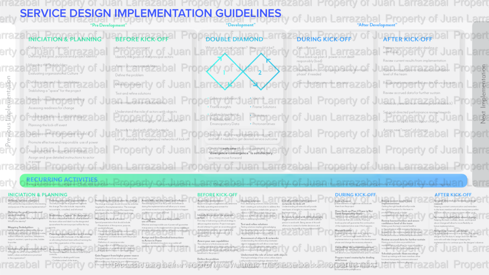 This file is a set of steps to take, best practices, and procedures that outline how to put service design principles into action within an organization. It provides a roadmap for transforming ideas into real-world service experiences that meet customer needs and business objectives.